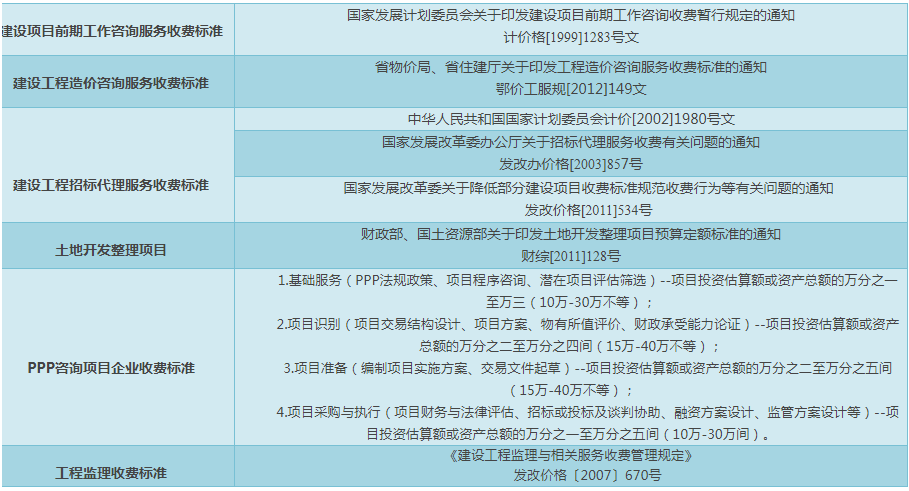 PPP咨詢項目企業(yè)收費標準