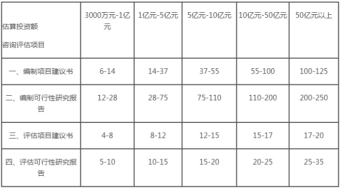 2.建設項目的具體標準,根據(jù)估算投資額在相對應的區(qū)間內插入法計算。