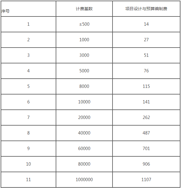 項目設計與預算編制費計費標準