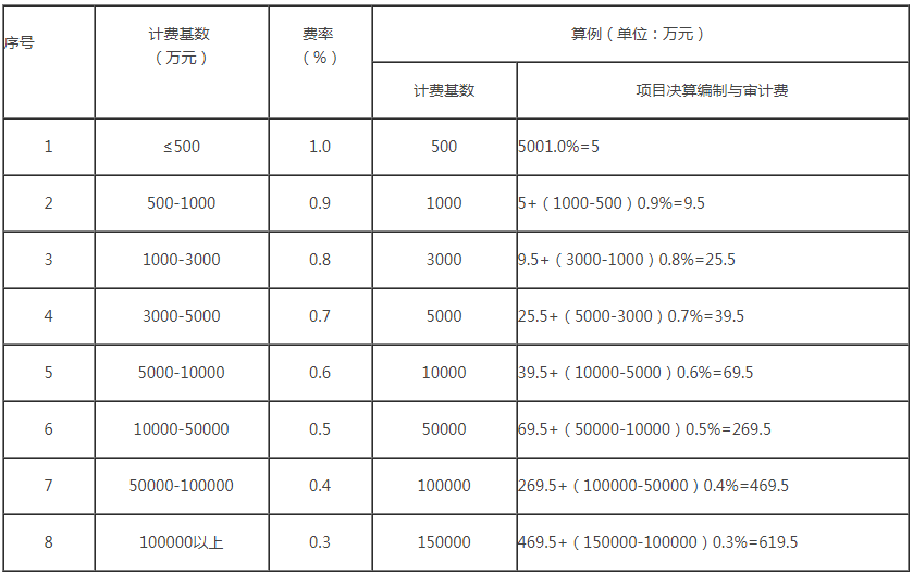 以工程施工費與設備購置費之和最為計費基數(shù),采用差額定率累進法計算。