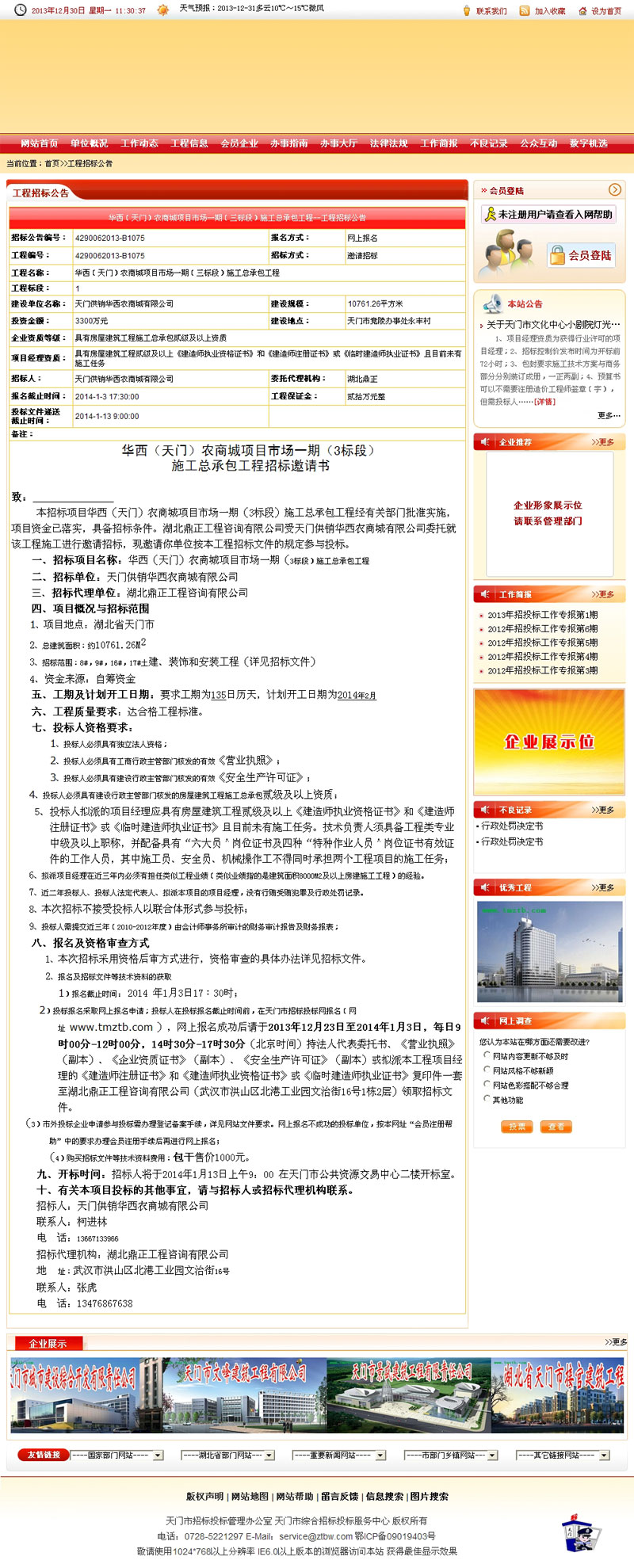 華西(天門)農(nóng)商城項(xiàng)目市場一期(三標(biāo)段)施工總承包工程