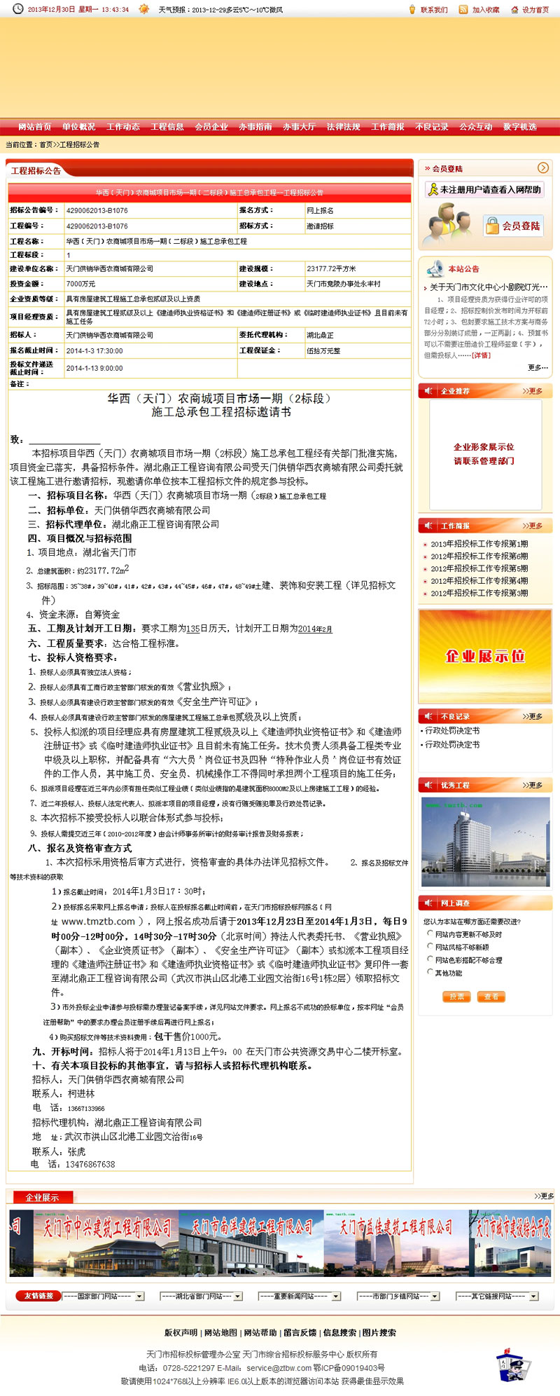 華西(天門)農(nóng)商場項目市場一期(二標(biāo)段)施工總承包工程