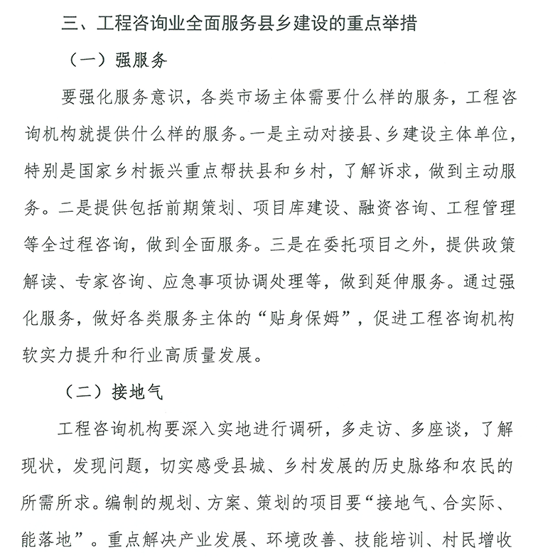 縣城城鎮(zhèn)化建設(shè)、鄉(xiāng)村建設(shè)是一項(xiàng)宏大的社會(huì)工程,需要整體的、長(zhǎng)遠(yuǎn)的規(guī)劃。特別是城鄉(xiāng)“二元”化結(jié)構(gòu)較為明顯,大部分鄉(xiāng)鎮(zhèn)和村莊發(fā)展規(guī)劃欠缺,村落布局散亂,公共服務(wù)供給不足,嚴(yán)重制約了縣城、鄉(xiāng)村發(fā)展。規(guī)劃咨詢,注重規(guī)劃先行,因地制宜,可運(yùn)用工程技術(shù)、科學(xué)技術(shù)、經(jīng)濟(jì)管理和法律法規(guī)等多學(xué)科的知識(shí)與經(jīng)驗(yàn),為縣城建設(shè)項(xiàng)目決策提供智力服務(wù),解決縣城發(fā)展與定位問(wèn)題,避免錯(cuò)亂發(fā)展,無(wú)效競(jìng)爭(zhēng)。