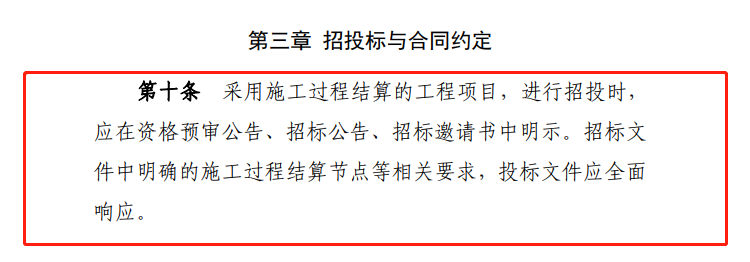 為了杜絕合同履約風(fēng)險,保證施工過程結(jié)算行之有效,應(yīng)根據(jù)項目特點,在專用條款中做出相關(guān)約定?!稌盒修k法》第十一條規(guī)定,采用施工過程結(jié)算的工程項目,在招標(biāo)文件和施工合同內(nèi)容中應(yīng)對下列事項作出約定:一、施工過程結(jié)算的節(jié)點;二、施工過程結(jié)算價款的計量、計價、支付的方式和時限,支付比例;三、施工過程結(jié)算時的價格調(diào)整方法;四、施工過程結(jié)算價款支付時,預(yù)付工程價款和工程進(jìn)度款的抵扣方式、抵扣比例;五、合同價款調(diào)整部分是否要列入施工過程結(jié)算價款;六、施工過程結(jié)算時應(yīng)包含的工程造價風(fēng)險內(nèi)容與幅度;七、施工過程結(jié)算履約擔(dān)保和工程保險的方式、時間和費用;八、施工過程結(jié)算時質(zhì)量保證金或保函扣留方式和時限;九、施工過程結(jié)算時發(fā)生結(jié)算價款爭議的解決方法。
