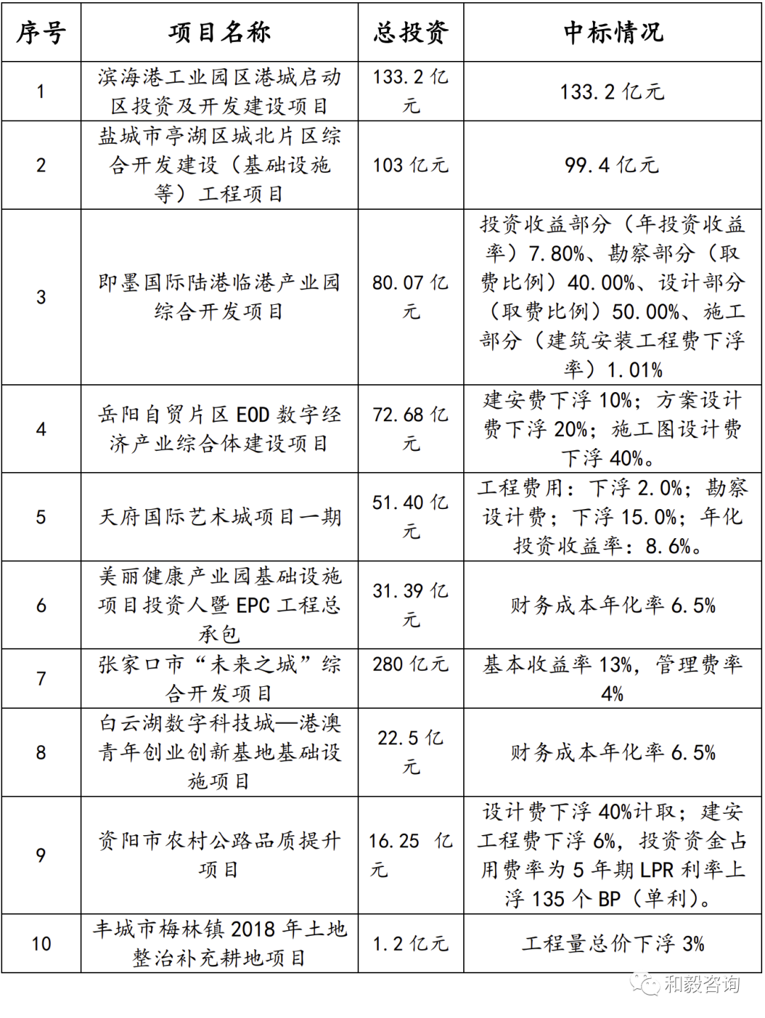 表3 國(guó)內(nèi)“投資人+EPC”典型項(xiàng)目中標(biāo)情況表