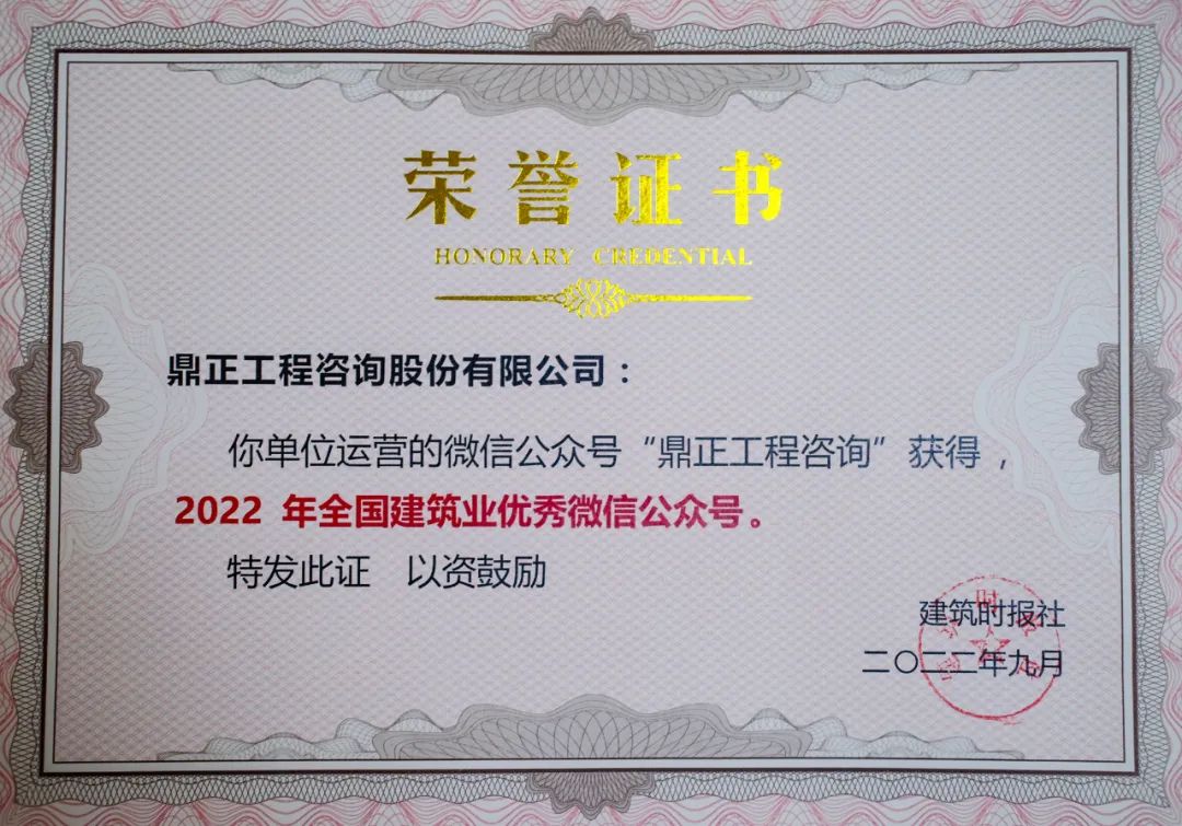 9月25-26日,由建筑時(shí)報(bào)社主辦的2022建筑業(yè)微信公眾號(hào)運(yùn)維經(jīng)驗(yàn)交流研討會(huì)暨全國(guó)建筑業(yè)優(yōu)秀公眾號(hào)頒獎(jiǎng)典禮在武漢舉辦。鼎正官方微信公眾號(hào)“鼎正工程咨詢”上榜全國(guó)建筑業(yè)優(yōu)秀微信公眾號(hào)榜單,榮獲2022年全國(guó)建筑業(yè)優(yōu)秀微信公眾號(hào)。
