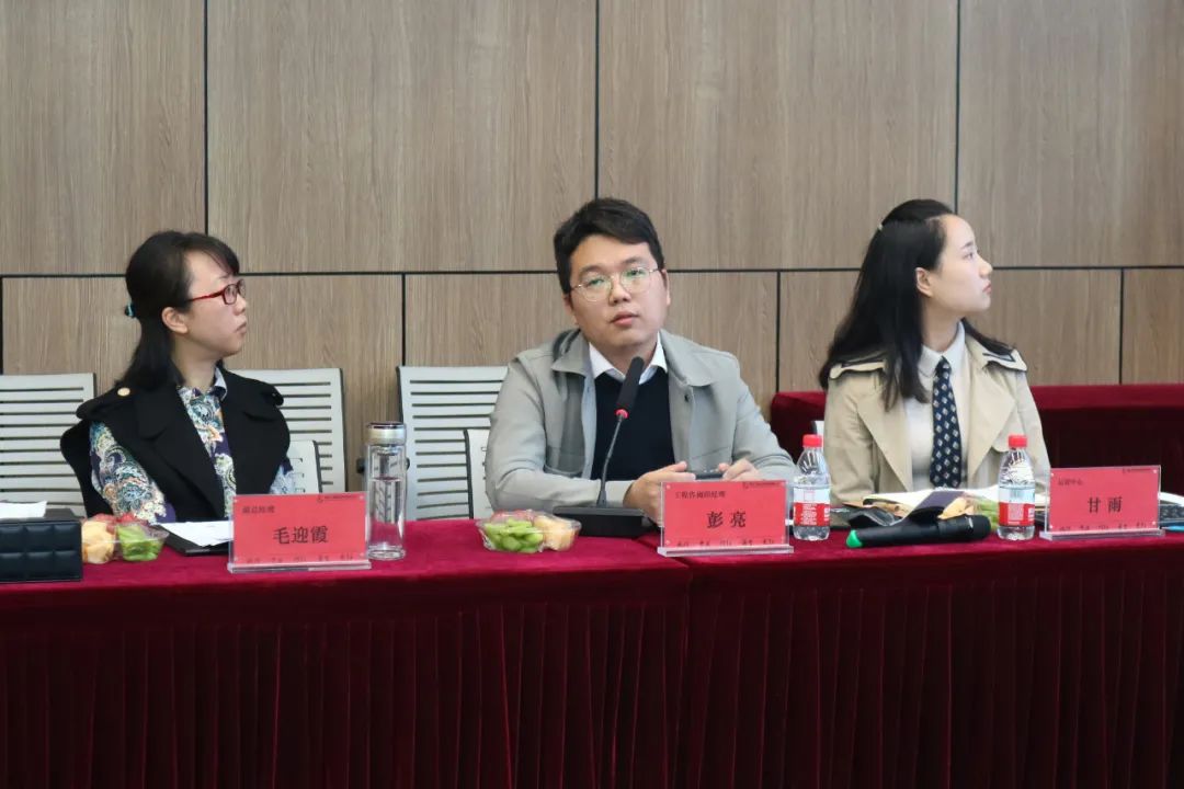 參觀結(jié)束后,在鼎正一樓珞珈會議室進行正式的調(diào)研座談,公司董事長王雁然、副總經(jīng)理毛迎霞、副總經(jīng)理姚建功、工程咨詢事業(yè)部經(jīng)理彭亮及相關(guān)部門經(jīng)理列席參加座談會。