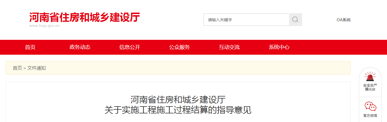 2020年7月23日,河南省住建廳下發(fā)《關于實施工程施工過程結(jié)算的指導意見》。