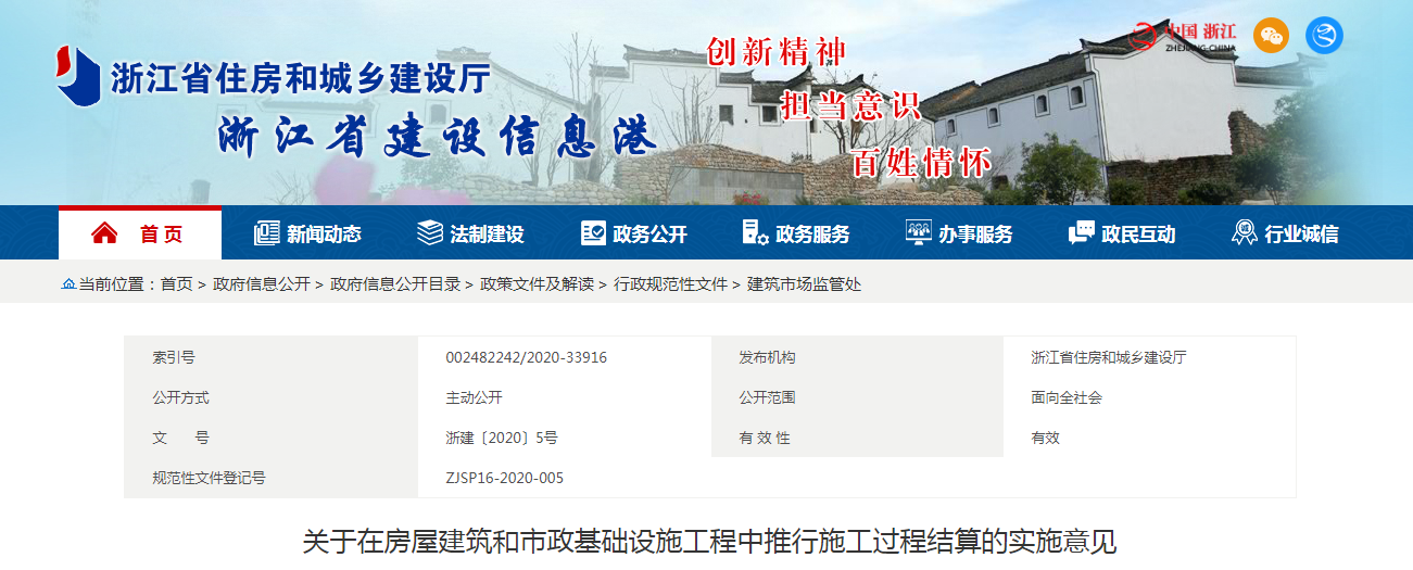 2020年5月20日,浙江省住建廳發(fā)布《關于在房屋建筑和市政基礎設施工程中推行施工過程結(jié)算的實施意見》:自6月20日起,在全省房建和市政項目中全面推行施工過程結(jié)算。