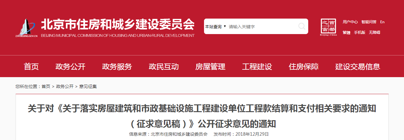 2019年1月17日,北京市住建委發(fā)布《落實房屋建筑和市政基礎設施工程建設單位工程款結(jié)算和支付相關要求的通知》,其中明確指出: