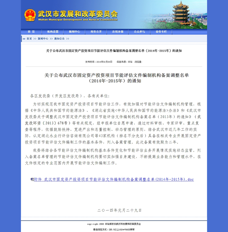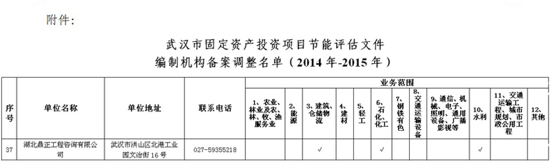 我公司入選武漢市固定資產(chǎn)投資項(xiàng)目節(jié)能評估文件編制機(jī)構(gòu)名單