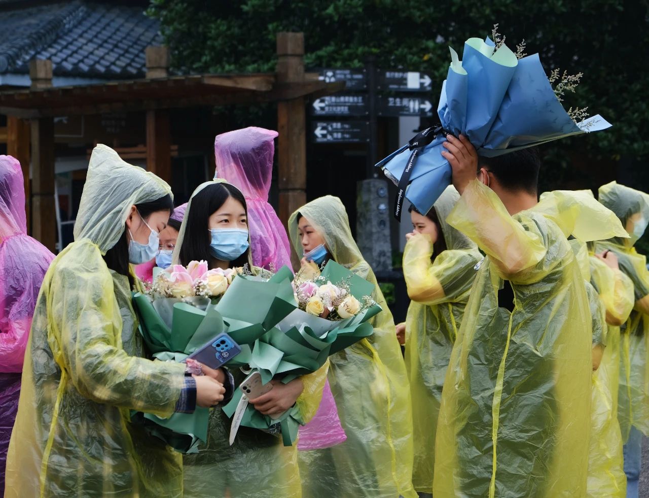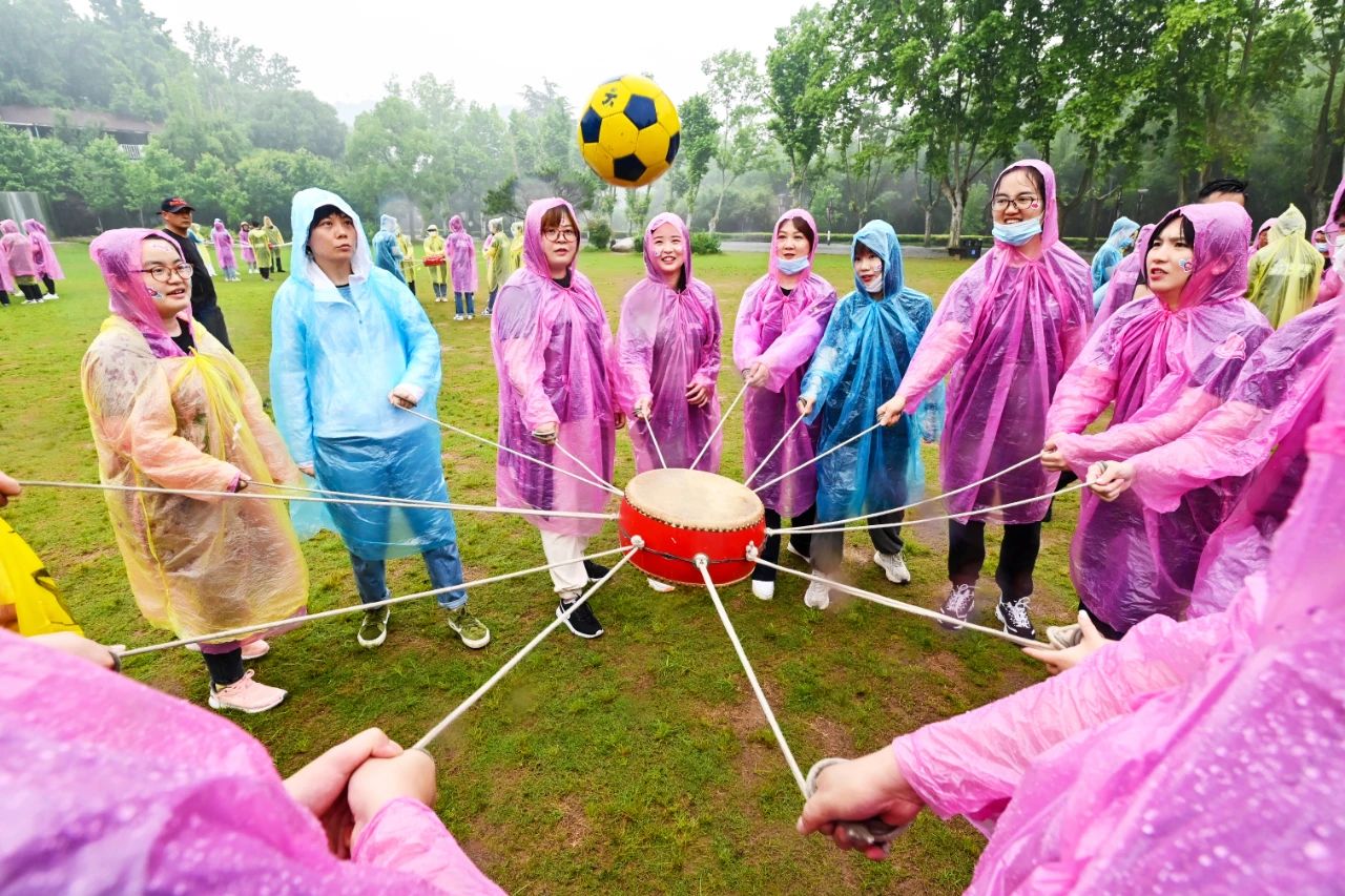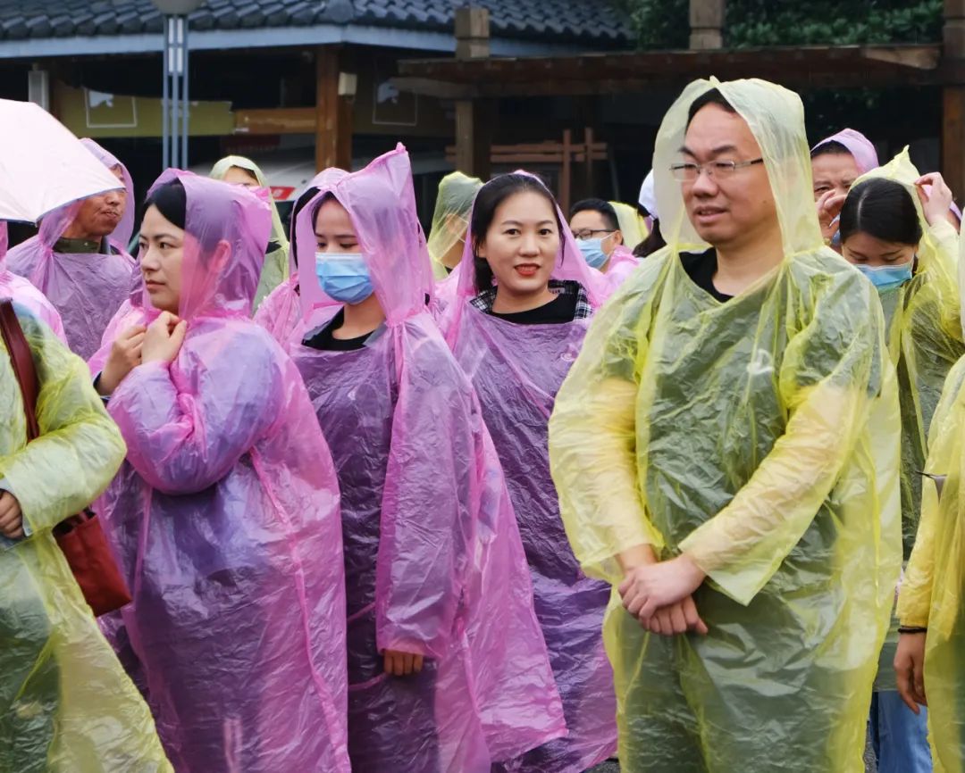 活動(dòng)當(dāng)天雖當(dāng)天上午持續(xù)陰雨連綿,但是出游的同事們并未停下腳步,路途大巴上交談甚歡載歌載舞,欣喜之情溢于言表,穿上花花綠綠的雨衣在雨霧中穿行,在東湖磨山水墨畫(huà)一般的景色中劃出一條彩色的長(zhǎng)線,亦是一道別樣的風(fēng)景。