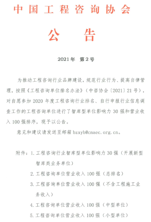 近日,中國工程咨詢協(xié)會和中國建設工程造價管理協(xié)會分別發(fā)布了《工程咨詢單位營業(yè)收入100強(中型單位)》和《關(guān)于2021年第三批工程造價咨詢企業(yè)信用評價結(jié)果》,其中,鼎正工程咨詢股份有限公司榮獲AAA等級信用評價,并在上述百強排名中位列第68: