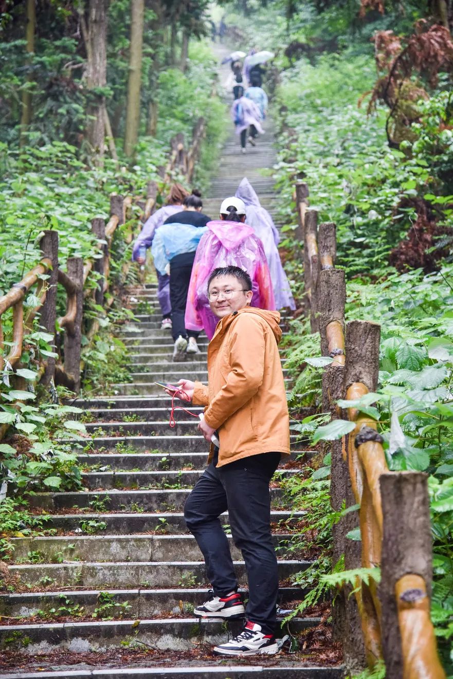 不一會(huì)兒的功夫,雨越下越大,一群舍不得下山的人還在努力拍照。