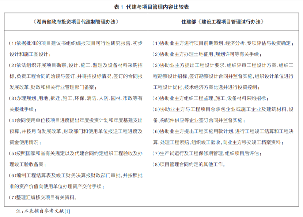 為貫徹2004年國(guó)務(wù)院發(fā)布的《關(guān)于投資體制改革的決定》精神,我國(guó)非經(jīng)營(yíng)性政府投資項(xiàng)目已逐步形成了“政府專業(yè)機(jī)構(gòu)代建、政府專業(yè)代建公司代建和社會(huì)代建單位代建”三種主要模式。2007年,湖南省對(duì)社會(huì)代建項(xiàng)目作出明確規(guī)定,代建服務(wù)的業(yè)主包含政府職能部門和項(xiàng)目使用方,體現(xiàn)了政府職能部門(發(fā)改和財(cái)政等部門)對(duì)非經(jīng)營(yíng)性政府投資項(xiàng)目的監(jiān)管,而且是可考核的工作。2007年住建部發(fā)布的《建設(shè)工程項(xiàng)目管理試行辦法》明確了為業(yè)主服務(wù)的項(xiàng)目管理內(nèi)容(表1),是以“協(xié)助”為主的服務(wù),這在當(dāng)時(shí)為推進(jìn)我國(guó)項(xiàng)目管理發(fā)展是必要的。目前,從效果考核的角度看,除了有部分是代理業(yè)主履行并可考核的工作外,大多的“協(xié)助”工作涉及到與業(yè)主的相互配合,服務(wù)效果難以考核。不能考核的工作要想得到業(yè)主和社會(huì)的認(rèn)可是困難的,這也是截至目前無法出臺(tái)全國(guó)性的工程項(xiàng)目管理服務(wù)酬金標(biāo)準(zhǔn)的原因之一。