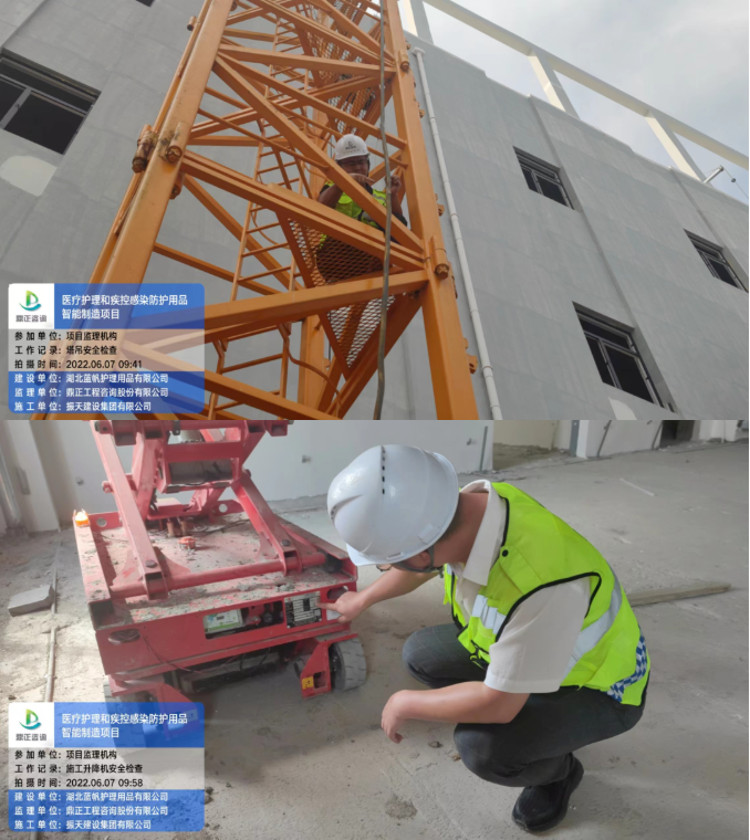 6月7日,醫(yī)療護(hù)理和疾控感染防護(hù)用品智能制造項(xiàng)目總監(jiān)理工程師陳雄對施工現(xiàn)場進(jìn)行塔吊、物料提升機(jī)、施工升降機(jī)、吊籃、臨時用電進(jìn)行聯(lián)合檢查,現(xiàn)場抽檢施工單位的安全生產(chǎn)規(guī)范。此次檢查以安全生產(chǎn)細(xì)化管理為要求,以查隱患、找短板、促整改、防事故為目的。安全是確保工程質(zhì)量的前提條件,質(zhì)量是建設(shè)單位所追求的最終目標(biāo),安全則是實(shí)現(xiàn)這一目標(biāo)的基本環(huán)境條件,安全監(jiān)理是這一環(huán)境條件的保護(hù)神。