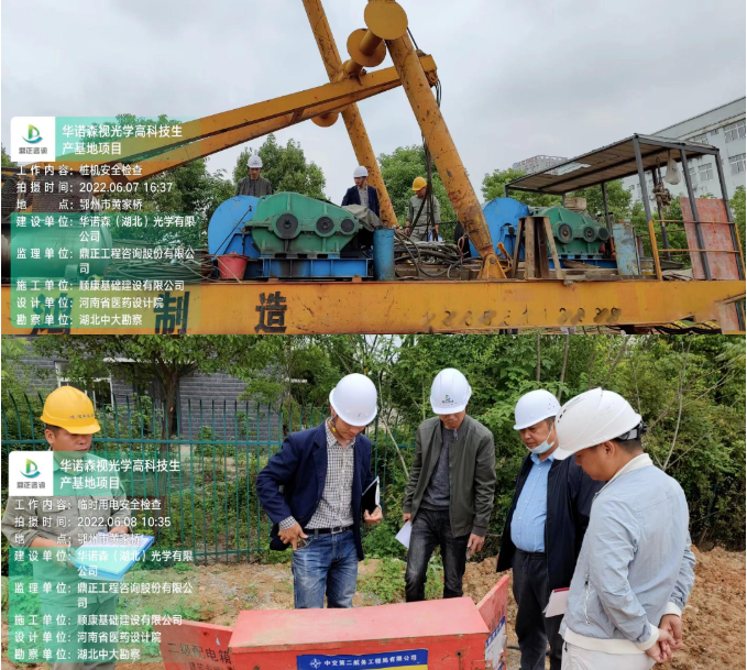 6月8日,華諾森視光學(xué)高科技生產(chǎn)基地項(xiàng)目總監(jiān)理工程師杜勝與施工單位項(xiàng)目經(jīng)理對施工現(xiàn)場、辦公區(qū)和生活區(qū)在內(nèi)的臨時用電逐一檢查。針對檢查中發(fā)現(xiàn)的施工現(xiàn)場臨時用電技術(shù)安全資料的完整性,電源線路中接地線設(shè)置的規(guī)范性以及生活區(qū)電源線接口安全等問題,采取面對面交流的形式,現(xiàn)場指出問題所在,并講解安全用電規(guī)范,提高作業(yè)人員的安全意識。