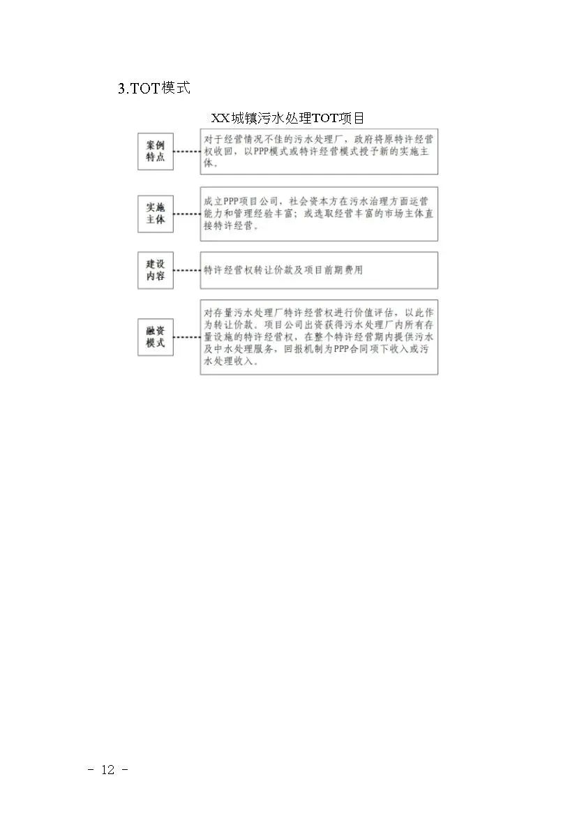 可采用政府將低效運營的存量垃圾污水處理設(shè)施的特許經(jīng)營權(quán)先行收回,再通過實施模式(TOT模式)授予新實施主體特許經(jīng)營權(quán),既可避免資產(chǎn)轉(zhuǎn)讓產(chǎn)生高額稅費,又可不受并購類貸款相關(guān)限制。
