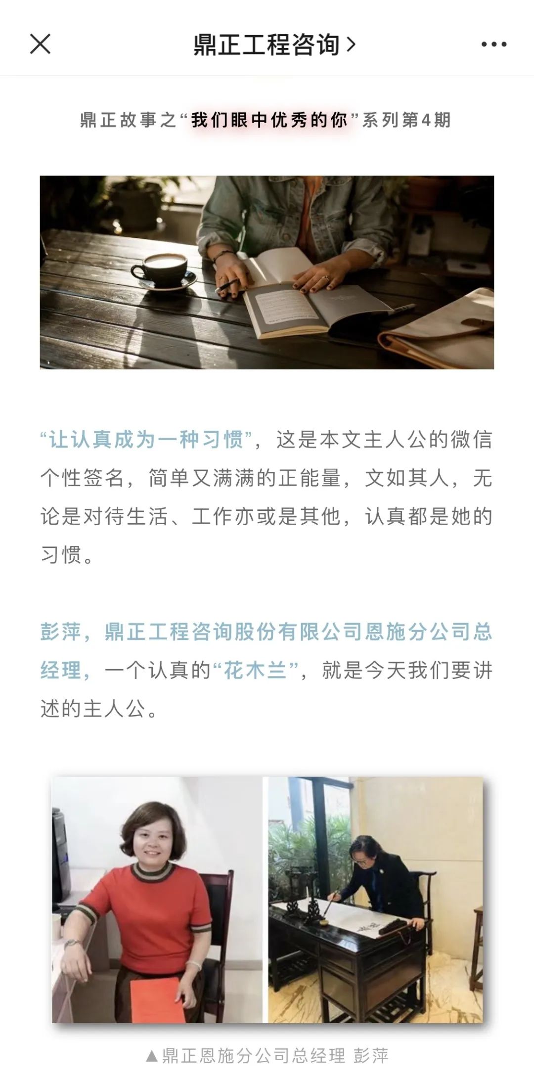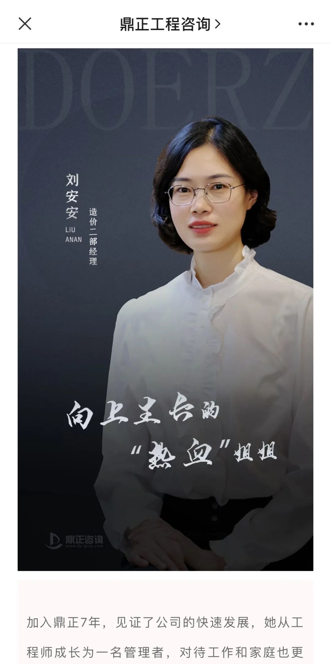 “鼎正工程咨詢”微信公眾號,既是公司品牌傳播的窗口,也是同事們互動交流的平臺。從2020年起,微信公眾號便相繼推出了“我們眼中優(yōu)秀的你”、“鼎正故事”、“榜樣人物”、“鼎正人物”等人文宣傳板塊,通過深度挖掘工程師的成長故事,全方位展示鼎正人的企業(yè)文化,為讀者奉上一道道關(guān)于奮斗的精神大餐。