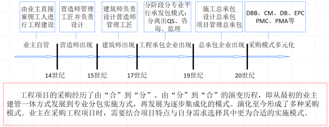 在這一演變過程中,業(yè)主的決策權(quán)不斷被削弱,外部機構(gòu)由工作責(zé)任不獨立(為業(yè)主提供服務(wù)與支持,但不需要承擔(dān)決策責(zé)任)發(fā)展為不完全獨立(業(yè)主管理的必要補充),進而發(fā)展為責(zé)任基本獨立(代表業(yè)主實施管理)。對工程項目的管理由“建管合一”逐步發(fā)展為“建管分離”。