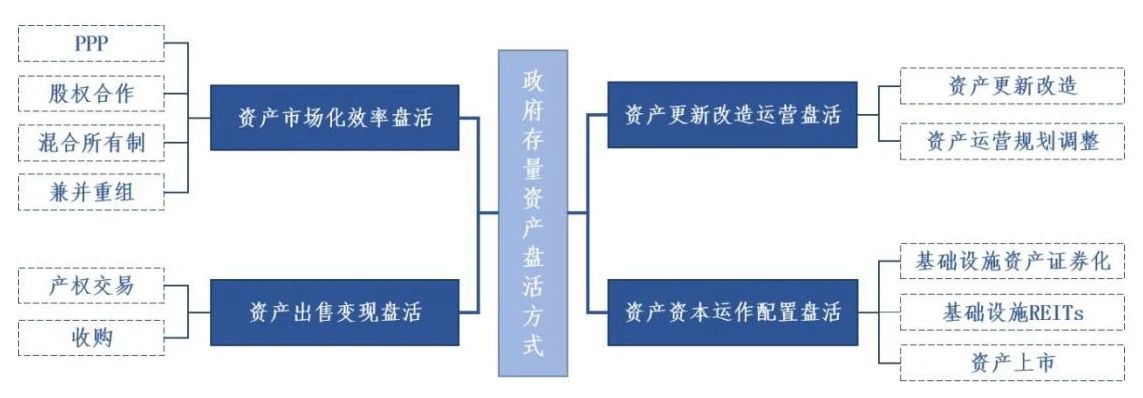 ? 資產(chǎn)市場化效率盤活,是指通過PPP模式、混合所有制改革、股權(quán)合作等市場化方式,引入并借助第三方的專業(yè)化技術(shù)、管理經(jīng)驗等,提高資產(chǎn)運營效率與質(zhì)量,進而盤活存量資產(chǎn)。