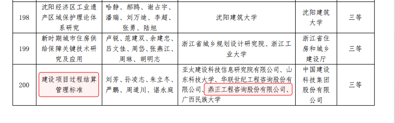 鼎正參與編制的《建設(shè)項(xiàng)目過程結(jié)算管理標(biāo)準(zhǔn)》(T/CECS 1178-2022)通過專業(yè)組和評審委員會的兩級評審,從700余個(gè)報(bào)送項(xiàng)目中脫穎而出,榮獲2024年度華夏建設(shè)科學(xué)技術(shù)獎三等獎。