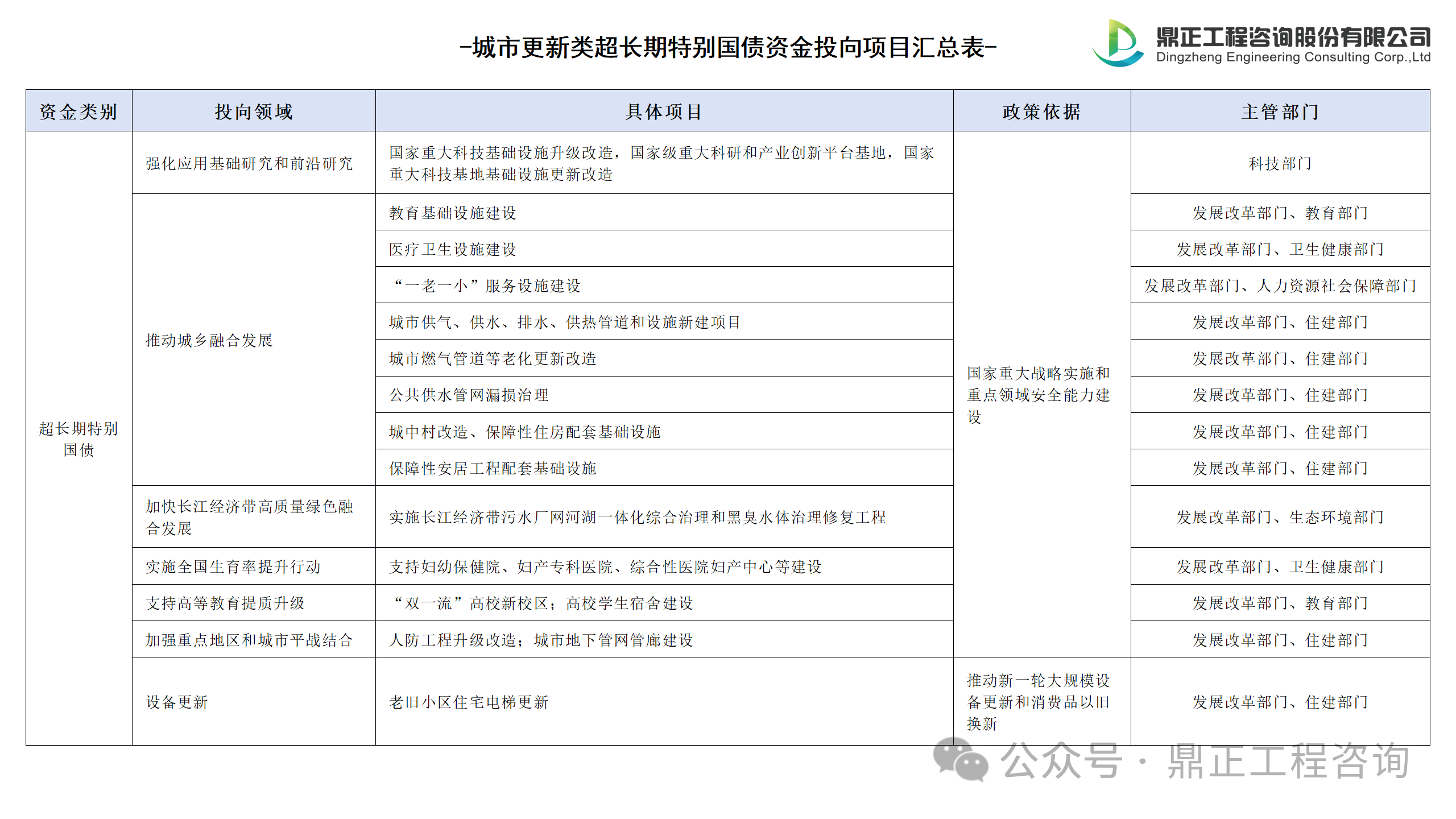 超長期特別國債是中央發(fā)行的債券,屬于債務性資金,全部通過轉移支付安排給地方使用,還本付息由中央承擔。超長期特別國債相關政策較為分散,無系統(tǒng)官方文件,申報時需及時關注發(fā)改委獲取最新政策。2025年超長期特別國債(20-30年)新增額度8000億,重點傾斜城市更新。超長期特別國債關注涉及國家戰(zhàn)略性、長期性的項目。重點支持城市燃氣、排水等地下管網改造、城鎮(zhèn)老舊小區(qū)改造(含電梯更新等設備改造)及防洪排澇等具有百年工程屬性的城市更新項目。