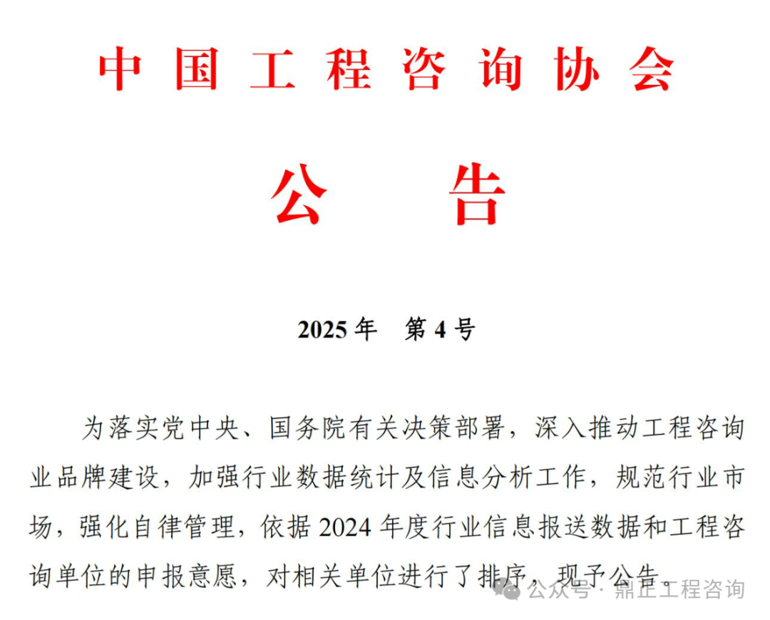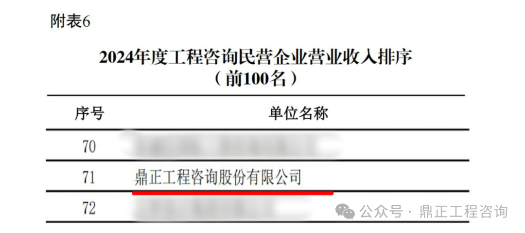 為進(jìn)一步推動(dòng)工程咨詢行業(yè)品牌建設(shè),規(guī)范行業(yè)行為、提高自律管理,8月21日,中國(guó)工程咨詢協(xié)會(huì)在官網(wǎng)發(fā)布了關(guān)于2024年度工程咨詢單位排序的公告。鼎正憑借穩(wěn)健的經(jīng)營(yíng)實(shí)力和綜合表現(xiàn),同時(shí)榮登兩項(xiàng)百?gòu)?qiáng)榜單,位列“2024工程咨詢單位營(yíng)業(yè)收入中型企業(yè)100強(qiáng)”第57位,以及“2024工程咨詢單位民營(yíng)企業(yè)營(yíng)業(yè)收入100強(qiáng)”第71位!