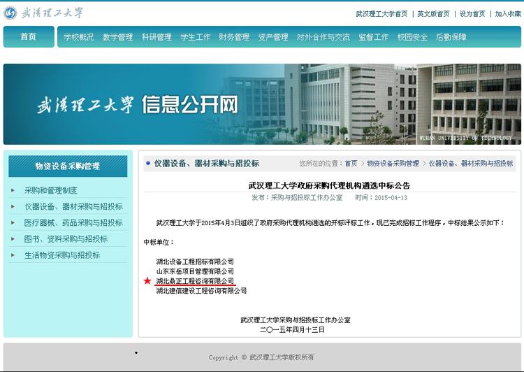 【經(jīng)營成果】我司入選武漢理工大學政府采購代理機構(gòu)庫