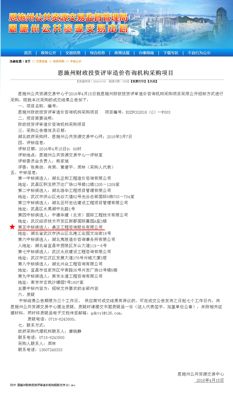 【經(jīng)營成果】我司中標恩施州財政投資評審造價咨詢機構(gòu)采購項目
