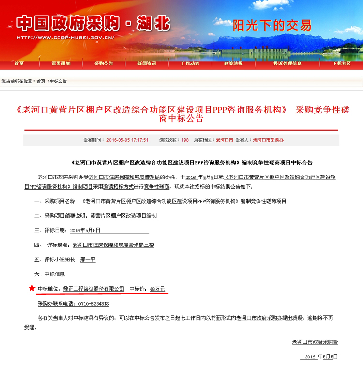 【經(jīng)營成果】我司中標(biāo)老河口市黃營片區(qū)棚戶區(qū)改造綜合功能區(qū)建設(shè)項目PPP咨詢服務(wù)機(jī)構(gòu)編制競爭性磋商項目