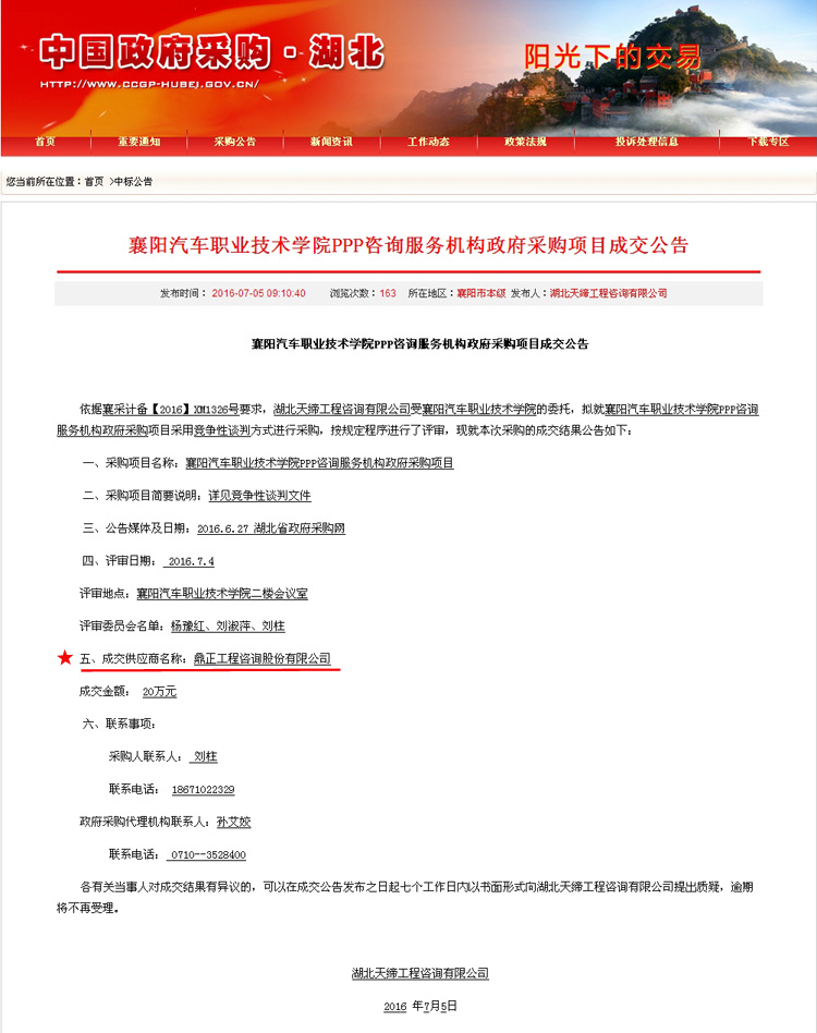 【經(jīng)營(yíng)成果】我司中標(biāo)襄陽(yáng)汽車(chē)職業(yè)技術(shù)學(xué)院PPP咨詢(xún)服務(wù)機(jī)構(gòu)政府采購(gòu)項(xiàng)目