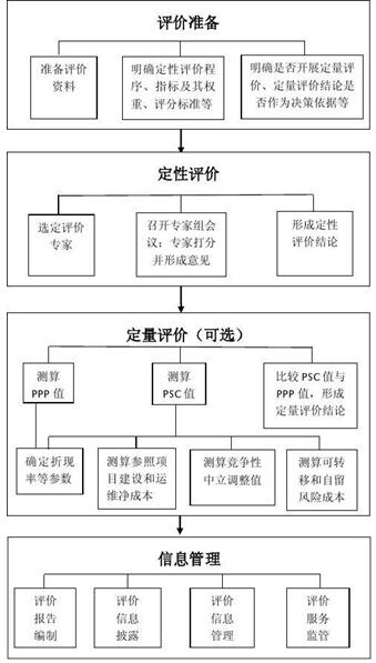 (二)評價方法。主要包括定性評價程序、指標(biāo)及權(quán)重、評分標(biāo)準(zhǔn)、評分結(jié)果、專家組意見以及定量評價的PSC值、PPP值的測算依據(jù)、測算過程和結(jié)果等。