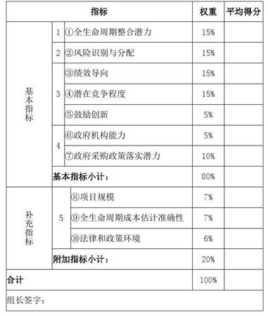 第九條 開展物有所值評價時,項目本級財政部門(或PPP中心)應(yīng)會同行業(yè)主管部門,明確是否開展定量評價,并明確定性評價程序、指標(biāo)及其權(quán)重、評分標(biāo)準(zhǔn)等基本要求。