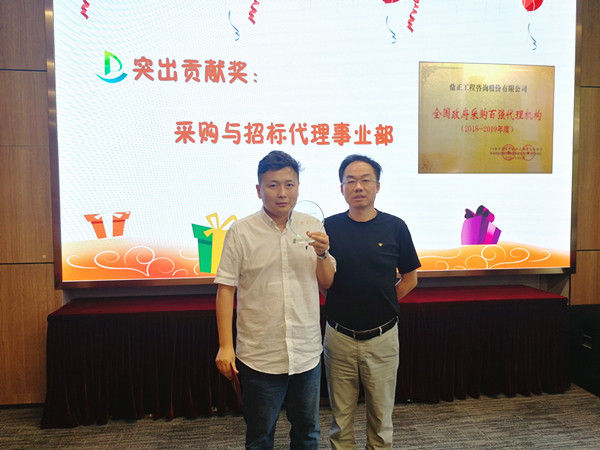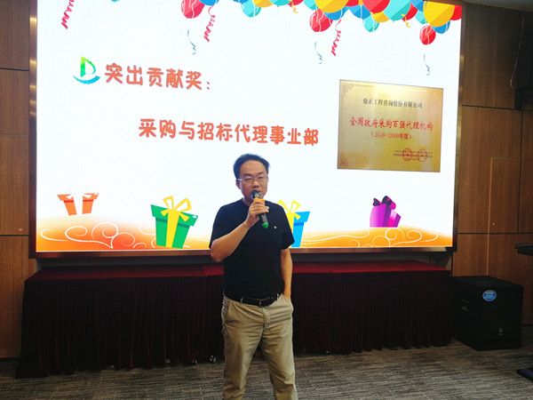 值得一提的是,今年七月我司憑借專業(yè)的服務(wù)、完善的內(nèi)控制度從近千家政府采購代理機構(gòu)中脫穎而出,獲得首屆“全國政府采購百強代理機構(gòu)(2018-2019年度)”榮譽稱號,這一榮譽稱號離不開采購與招標事業(yè)部全體成員積極主動的參評。董事長王雁然為采購與招標事業(yè)部頒發(fā)突出貢獻獎,并號召大家向采購與招標事業(yè)部學(xué)習(xí)大局意識和吃苦耐勞的工作作風(fēng)。