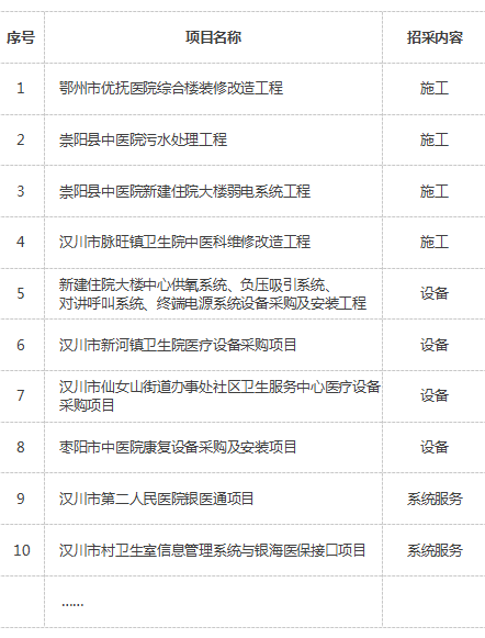 截止目前我司已為鄂州、咸寧、漢川、襄陽(yáng)等地區(qū)的公立民營(yíng)醫(yī)院及基層醫(yī)療衛(wèi)生機(jī)構(gòu)提供了30多個(gè)項(xiàng)目的招采服務(wù)。